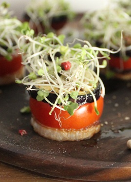 長いもと茄子とカクテルトマトのミルフィーユ ブロッコリースプラウトをのせて 長いも、茄子、カクテルトマトはすべて輪切りに。 長いも、茄子をオリーブオイルでこんがり焼き、塩こしょうします。 長いも、トマト、茄子の順番に重ねてトッピングにブロッコリースプラウトをのせます。 煮詰めたバルサミコ酢をかけて出来上がり! ピンクペッパーを飾っても。 簡単すぎてすいません。でも美味しいですよ~♪ トマトは美味しいものを選びましょう。 ************************** スプラウトについて少し。 スプラウトは野菜の発芽して間もない、発芽野菜のことをいいます。 野菜の赤ちゃんですね~。 スプラウトは他の野菜に比べて、ビタミン、ミネラルが豊富といわれています。 なぜなら、新芽、最初の葉が出る段階で、植物は、種子の状態では存在しなかった種類のビタミンや、その他の栄養成分を合成するからなのです。 主なスプラウトの種類はブロッコリー、クレス、レッドキャベツ、マスタード、カイワレ大根、豆苗、ソバ、アルファルファ、大豆モヤシなどがあります。 それぞれスプラウトの種類によって栄養素は異なりますが、 成熟野菜と比べて栄養価の高い点では変わりません。 例えば、そばスプラウトの栄養は、ルチンがそば粉よりも多量に含まれ、さらにルチン以外のポリフェノール含有も多いことが研究で明らかになっています。 本日使用したのはこちら。 ブロッコリースーパースプラウト。 サラダなどにのせて積極的に取りたいですね~。 キッチンや窓辺で手軽に栽培できるので、またご紹介しますね♪ PR |