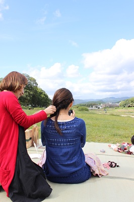 本日は・・・鴨川で「ヘアアレンジ×ローフード」イベントを開催しました。 まずは、プロの美容師のチカちゃんによるヘアアレンジ~♪ さすが美容師さん、チャチャっとアレンジを。 心地良い気候の中、 鴨川を眺めながらの青空美容室となりました。 髪に大切なのは、睡眠と食事だそう。 やはり食事は大事ですね。その中でも髪に良い食べ物は ・海藻類 髪に良いといえばやっぱりコレ!海藻類にはミネラルが豊富なので髪の色を美しくしてくれます。 ・野菜 健康な体作りには欠かせないものですが、中でも「ねぎ」はカルシウムやビタミンBを多く含んでるので抜け毛予防に効果的。髪のパサつきにはほうれん草。その他、ブロッコリーにはビタミン類が豊富なので髪だけでなく頭皮にも良い食べ物です。 ・黒ゴマ 黒ゴマの皮にはアントシアニンという色素が含まれているので、白髪に悩んでいる人に良いでしょう。 オーガニックのシャンプーの話や、ヘナのこと。みんな興味深々で聞いていました。私もいろいろ質問しちゃいました! アレンジの出来栄えに満足のみんな。 女の子はこれだけで、1日楽しく過ごせちゃうんです(^^) みんな可愛く変身♪ その間に、 ブルーソーラーウォーターを エネルギーチャージ!! そして!!お待ちかねのローフードランチ! (左上から時計まわりに) ・フルーツ盛り合わせ ・大根と人参のフィットチーネ ・raw sweets ・きのことカリフラワーのマリネ ・アルファルファの海苔巻 ・根菜ボール ローフードのお話をあれこれさせて頂きました。 いつものごとく話し出したらとまらない(笑) 心も体も大満足な1日になりました。 参加して下さった皆様、ありがとうございました。 今回参加出来なかった方、また次回お会いしましょう。 こんなことしてみたい!という要望があればお聞きします。 sayocoまでどうぞ。 sayoco.gohan@gmail.com PR |