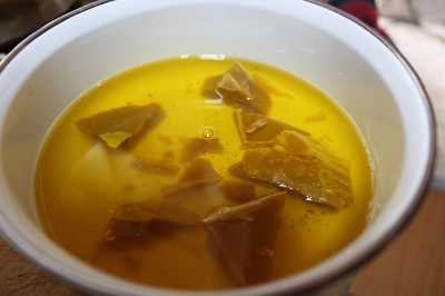 材料は、蜜蝋と植物油の2つです。 今回は山中油店さんで購入した荏油(えあぶら)を使用しましたが亜麻仁油、菜種油などでも良いです。 荏油300mlに対して蜜蝋50gです。 (蜜蝋の割合を増やせば固いワックスになります) 作り方はとっても簡単! ホーローに入れ湯煎で溶かしていきます。 ミツロウの融点は60~65℃程。 完全に溶けるまで。 溶けたら、容器に入れ、固まれば出来上がり~(^^)/ これで、床を磨けばツヤツヤ~! その他、革靴などを磨いても。 簡単に作れるので、年末の大掃除に作ってみてはいかがでしょうか! |